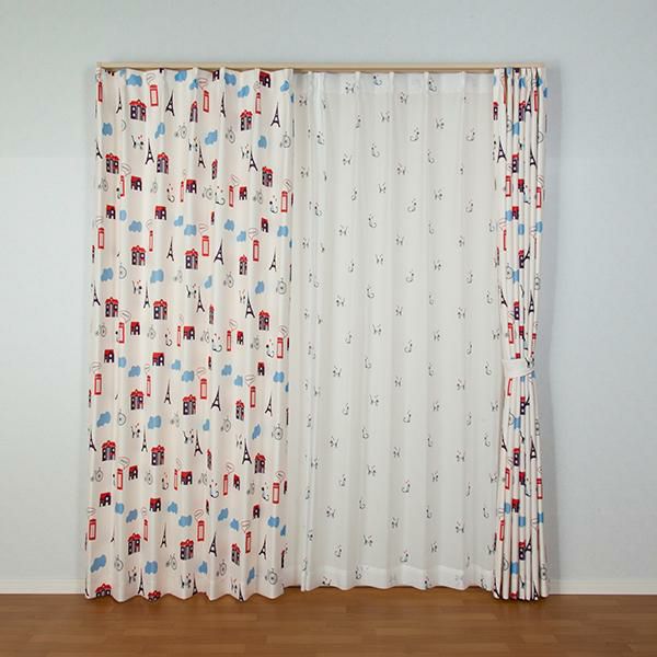 まるで海外に旅行しに来たかのような雰囲気が魅力的な、海外チックなデザインのセットカーテン。