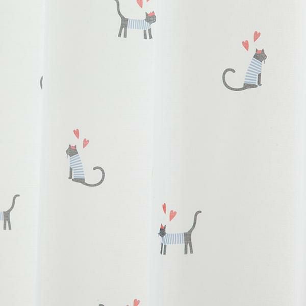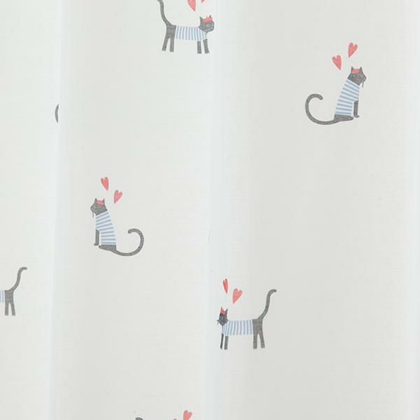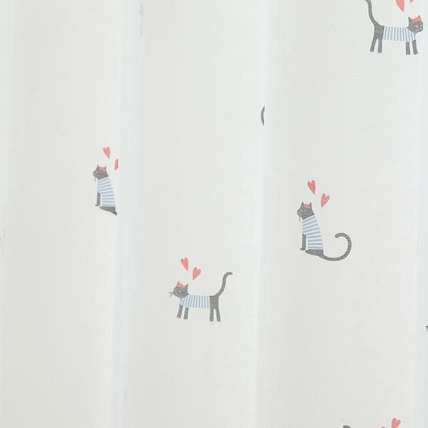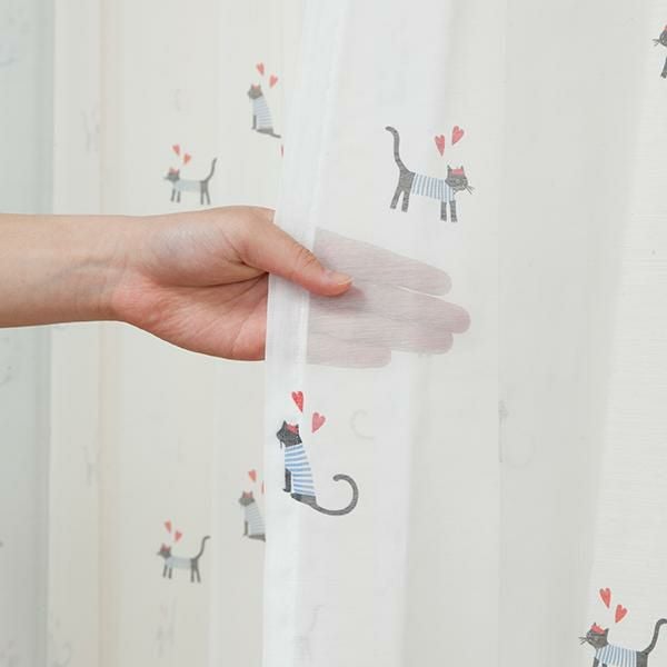 レースカーテンにはお散歩中の猫がちょこんと描かれ、開けても閉めてもかわいいお部屋に。