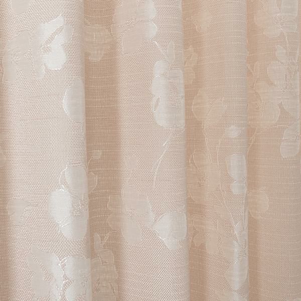 ざっくりした風合いの素材にサテン織で表現したお花が映えるジャカードカーテン。