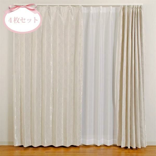 セット内容:厚地カーテン2枚+レースカーテン2枚(計4枚)