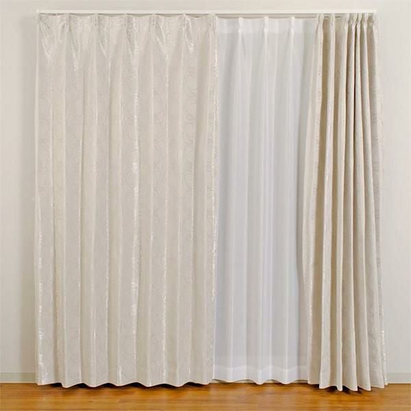 角度によってシルバーにも見えるアイボリーベージュカラー。3級遮光付きなので、程よく光を遮り、また形状記憶加工付きのためドレープがすっきり収まりスタイリッシュなムードです。