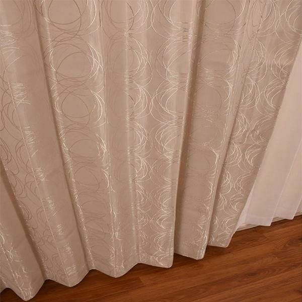 ランダムにデザインされたサークル柄が上品な印象のセットカーテン。