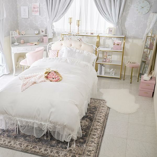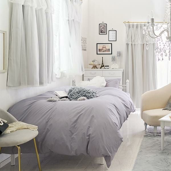 ライトグレーに合わせたホワイトのレースが大人上品なので、海外風、モノトーン系のモダンなお部屋にもオススメ。