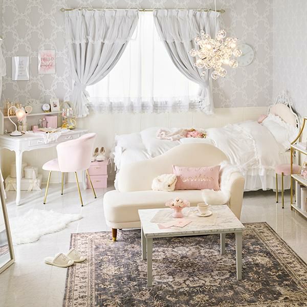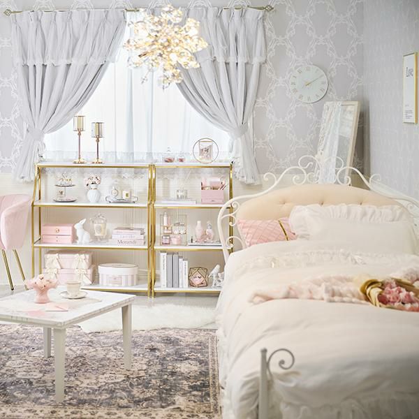 ほどよく光を遮る2級遮光のドレープとやわらかなレースを組み合わせ、憧れのお姫様気分を演出。