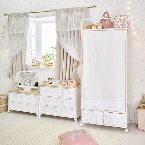 ほどよく光を遮る2級遮光のドレープとやわらかなレースを組み合わせ、憧れのお姫様気分を演出。