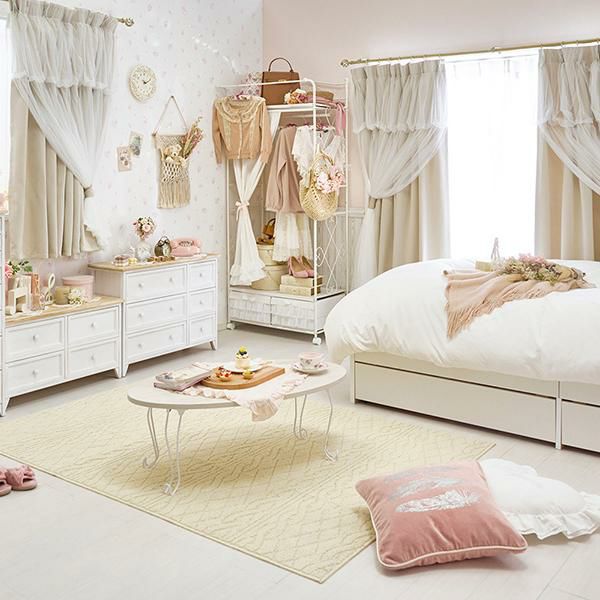 ベージュに合わせたホワイトのレースが可愛く、韓国風やナチュラル、淡色インテリアのお部屋にもオススメ。
