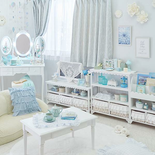 少しくすんだ淡い水色カラーでお部屋を上品に彩ります。