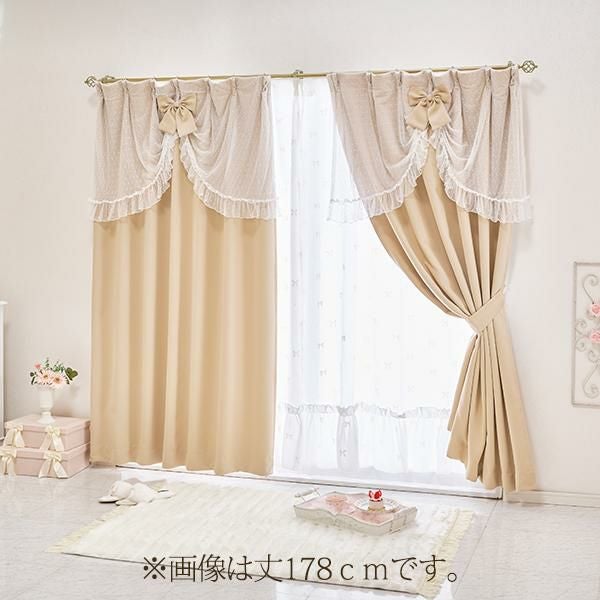 ミルクティカラーが上品なビッグリボン上飾りカーテン