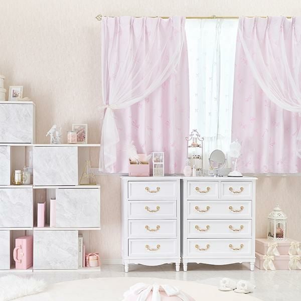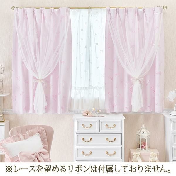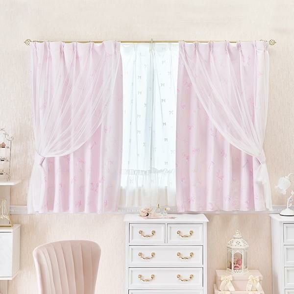 ふんわりリボンがロマンティックガーリーな遮光カーテン♪