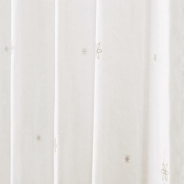 レースカーテンは、キラッと光るスパンコールがアクセントの小花柄を刺繍で表現した、柔らかい風合いのボイル生地。UVカット、ミラー、省エネ機能付きのため、安心してお使いいただけます。