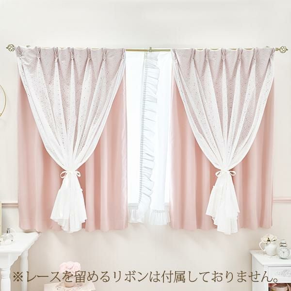 フラワーデザインのホワイトレースが優しいムードの1級遮光レイヤードカーテン♪