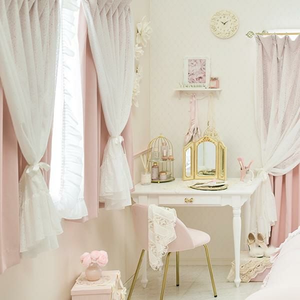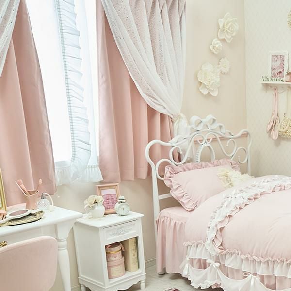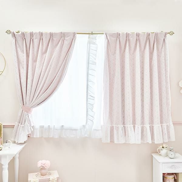穴あきのレースはドレープカーテンのピンクを優しく見せ、フェミニンカジュアルなムード。少しコーラル寄りのピンクカラーが可愛いドレープカーテンは1級遮光で、しっかりと光を遮ります。フラワーレースのみをサイドでタッセルで留めたり、お手持ちのリボンで中央で留めたり、ドレープカーテンのみをタッセルで留めてレースの透け感を楽しんだりと、アレンジ次第で窓辺のイメージチェンジも簡単に叶います♪