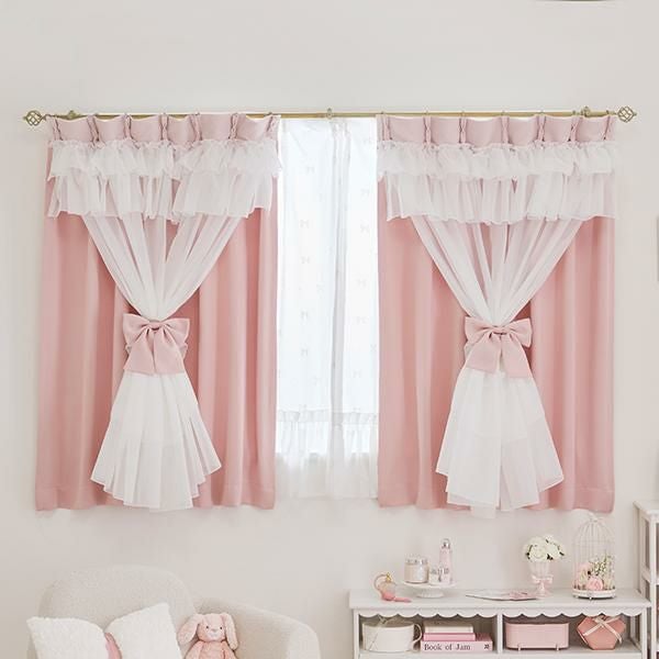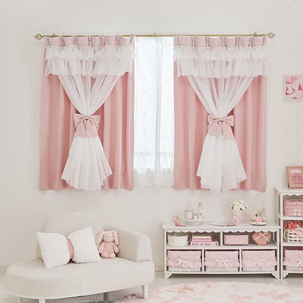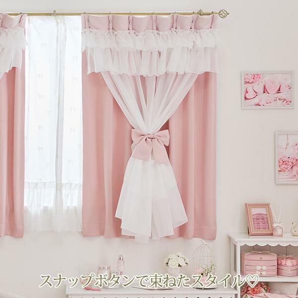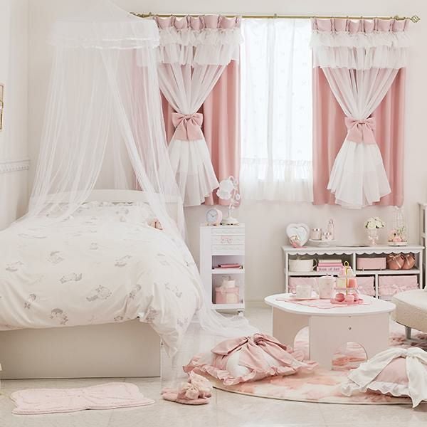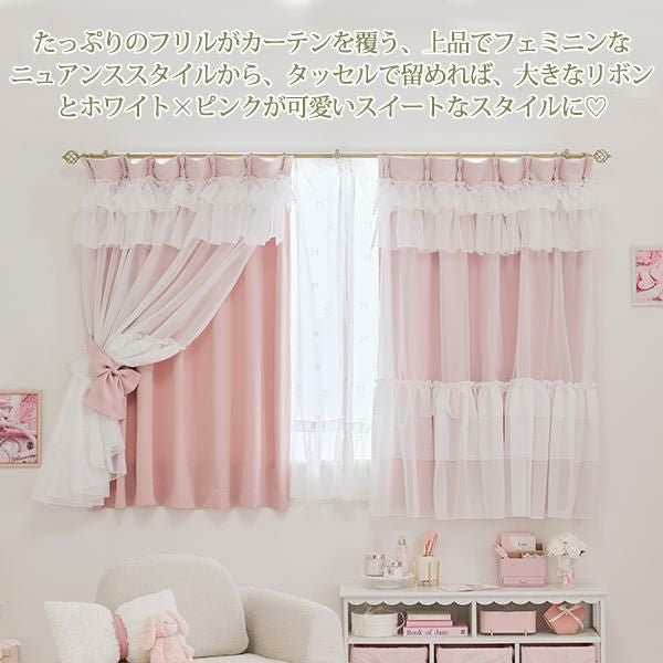 幾重にも重なるフリルとリボンが優雅に視線を集める、憧れのドレスのような遮光カーテン。窓辺に、気品あふれるお城のような彩りを♪