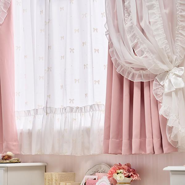 セットのレースカーテンは、ふわふわのフロッキー加工で描かれたリボンとドットが主役。 ベルベットのような立体感のある模様と、たっぷりの裾フリルが優雅な雰囲気を演出します。シワになりにくいボイル生地は、さらりとした肌触りと美しい透け感が魅力。ドレープの手前に重ねて、柄を際立たせるコーディネートもおすすめ。細部までこだわったフリルタッセル付きで、お部屋をロマンティックに彩ります。遮光カーテンと、ボイルレースカーテンがセットなっているので、届いてすぐに使えて簡単に可愛いお部屋作りが叶います♪