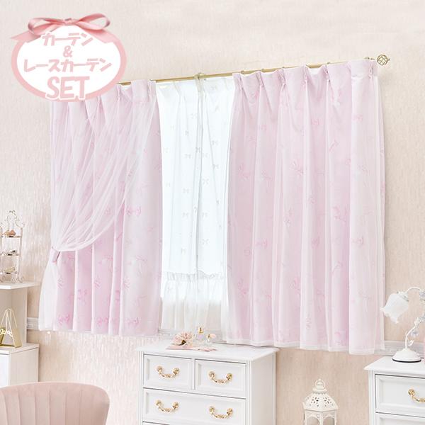 コーディネート不要!窓辺がパッと華やぐ、ふんわりリボンのレースカーテン付き4枚セット♪