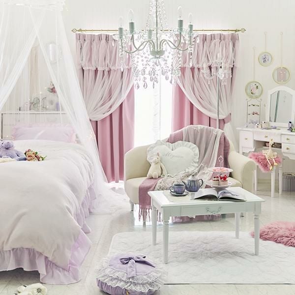 ほどよく光を遮る2級遮光のドレープとやわらかなレースを組み合わせ、憧れのお姫様気分を演出。