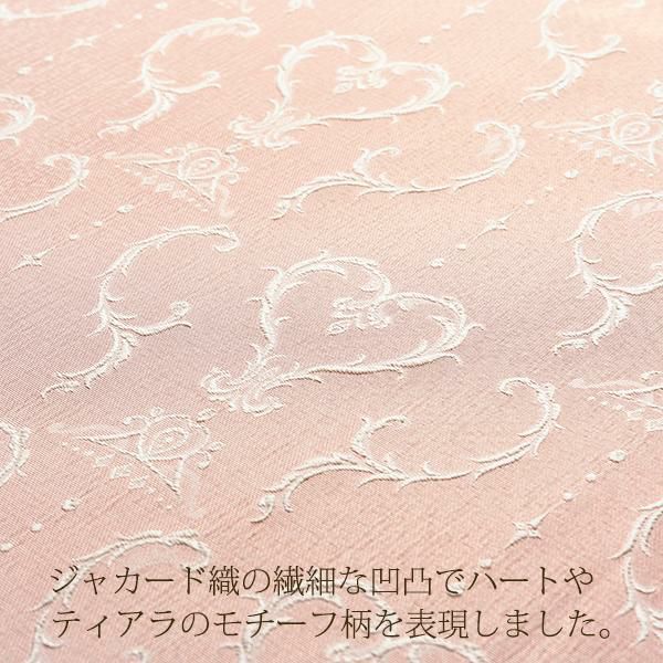 プリントとは違う織で表現された柄の陰影が美しく高級感のある手法で、オーナメント調の柄にティアラやハートのモチーフをあしらいました。
