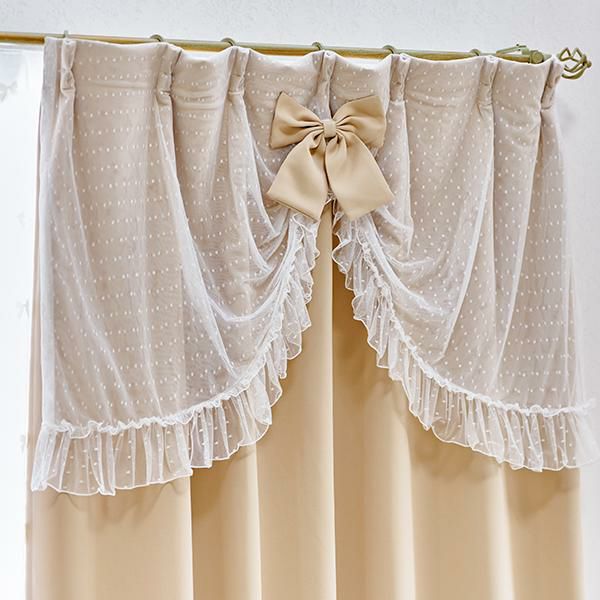1級遮光のドレープカーテンにドットチュールレースの上飾りフリルをデザインしたカーテン。