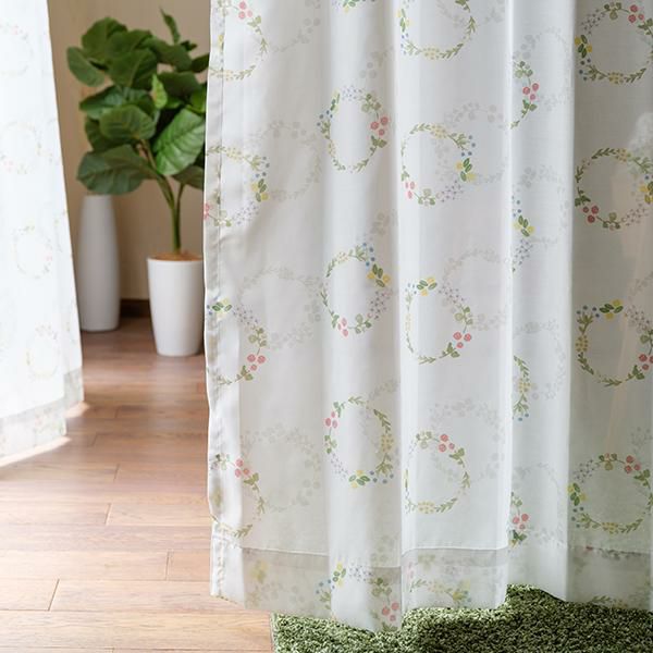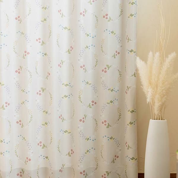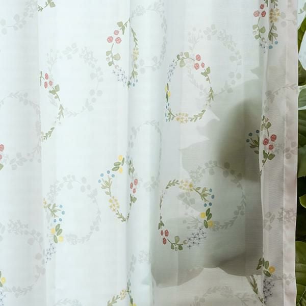 柔らかなボイル生地のレースカーテンも、ドレープカーテンと同じ花束ブーケのデザイン。