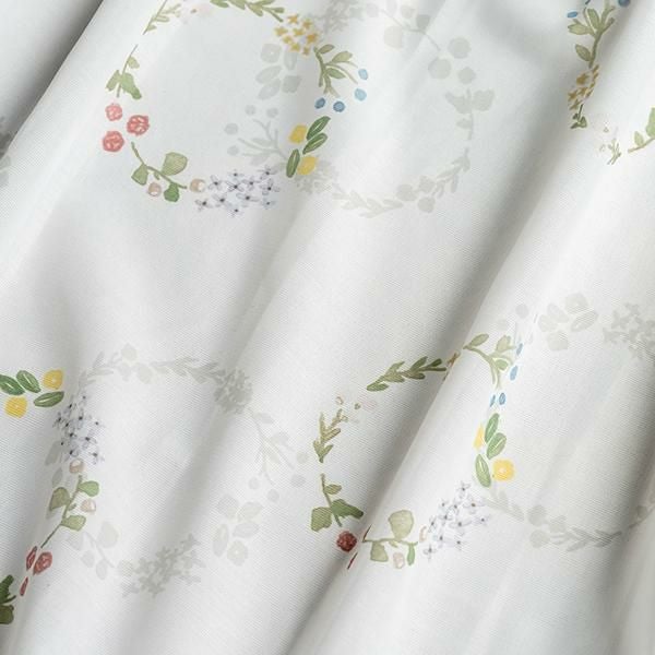 カラフルな草花をブーケにした明るく優しい雰囲気がかわいいセットカーテン。