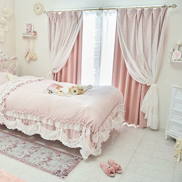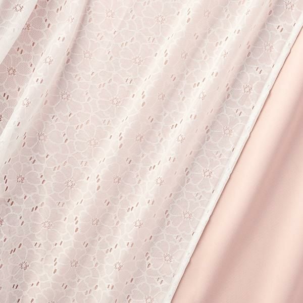 穴あきのレースはドレープカーテンのピンクを優しく見せ、フェミニンカジュアルなムード。少しコーラル寄りのピンクカラーが可愛いドレープカーテンは1級遮光で、しっかりと光を遮ります。フラワーレースのみをサイドでタッセルで留めたり、お手持ちのリボンで中央で留めたり、ドレープカーテンのみをタッセルで留めてレースの透け感を楽しんだりと、アレンジ次第で窓辺のイメージチェンジも簡単に叶います♪