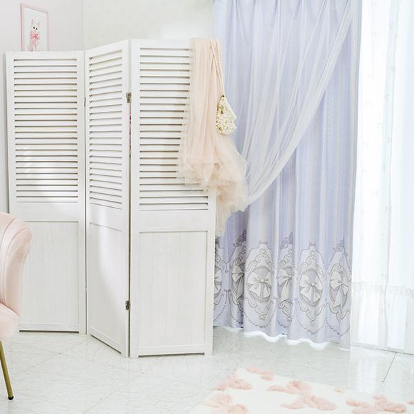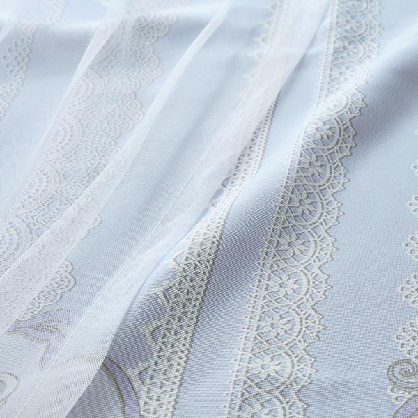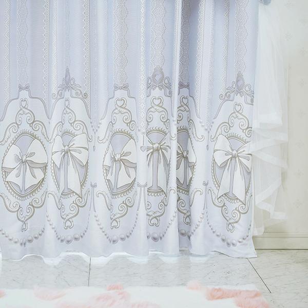 クラシカルなカメオモチーフにリボンを描き、繊細なチュールレースを重ねた遮光カーテンと可憐なレースカーテンの4枚セット。淡いブルーとラベンダーグレーが溶け合う水彩画のような色彩は、眺めるたびに心がうっとり解けていくような優しさ。上部に施されたストライプ状のレース柄が、お部屋に気品漂う、クラシカル・フェミニンなエッセンスを添えてくれます。ふわりと重なるチュールの透け感は、まるでお部屋がドレスを纏ったかのよう。カメオリボン柄をより幻想的に、柔らかく演出します。セットのレースは、リボンとドットのフロッキー加工を施した立体感のある仕上がり。シワになりにくいボイル生地を使用しており、たっぷりの裾フリルが窓辺を優雅に演出します。遮光カーテンと、ボイルレースカーテンがセットなっているので、届いてすぐに使えて、簡単に可愛いお部屋作りが叶います♪