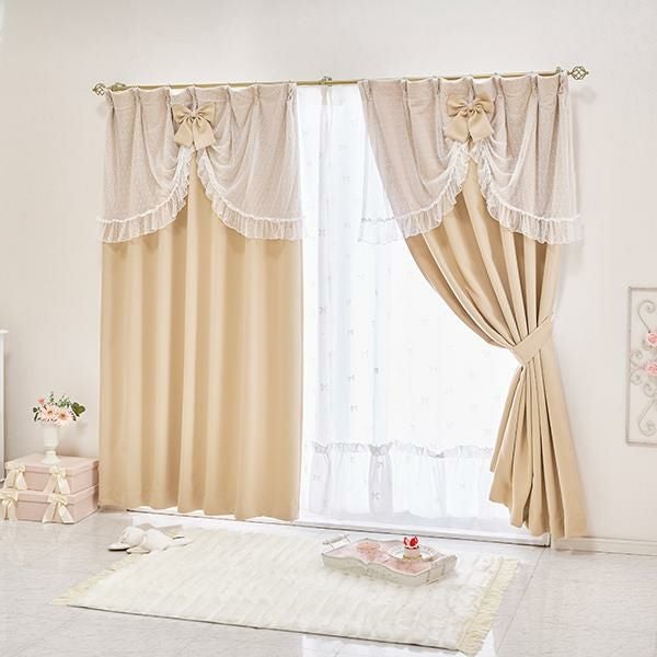 ミルクティカラーが上品なビッグリボン上飾りカーテン