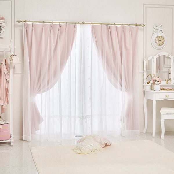 柔らかなピンクカラーにレイヤードしたホワイトが儚げで美しい、3WAYのダブルカーテン♪