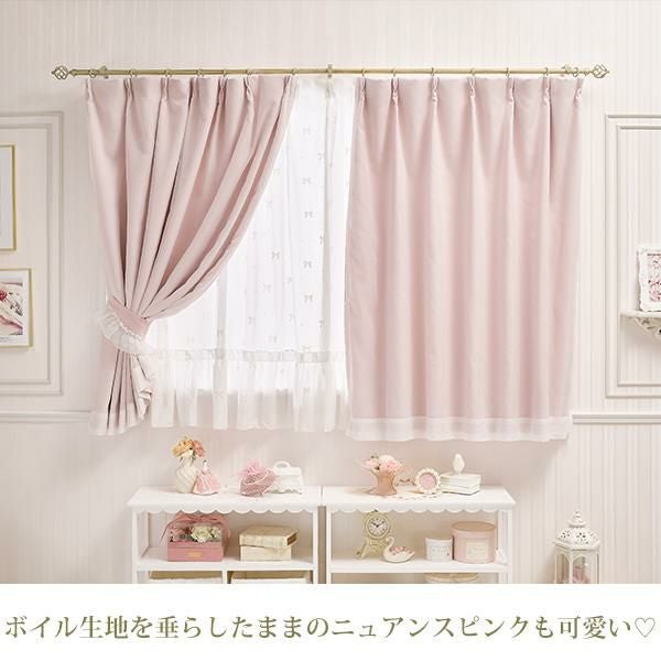 ボイル生地を垂らした状態で淡い雰囲気を楽しんだり、フリルタッセルで、ボイルだけ左右に留めてクロスオーバー風に使っても♪タッセルにもフリルを付けた特別感のあるデザインに仕上げました。付属のサテンリボンを使ってボイルを中央で留めるスタイルもオススメ。ピンクのサテンリボンでちょっと可愛い雰囲気にチェンジできます。光を遮りながら、窓辺を彩る遮光カーテン。ロマンティックフェミニンなお部屋の演出にピッタリのアイテムです。重ねるボイルをホワイトにし、よりドレープカーテンとのニュアンスを楽しめるデザインにリニューアルしました。