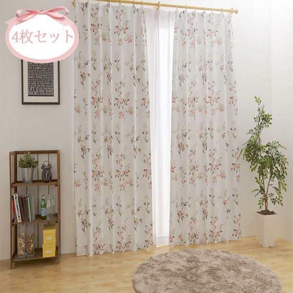 セット内容:厚地カーテン2枚+ボイルレースカーテン2枚(計4枚)
