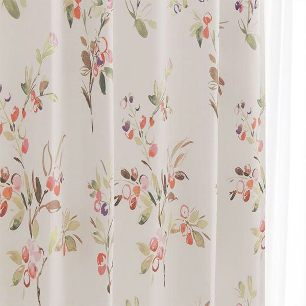 水彩画風タッチの実のついたようなブーケがやさしいムードのセットカーテン。