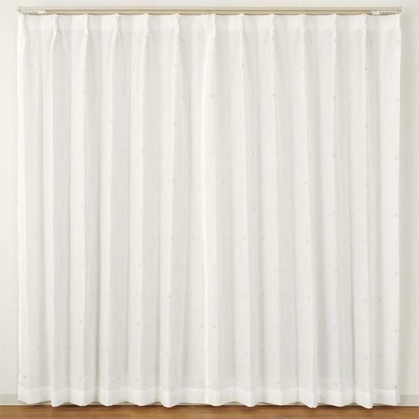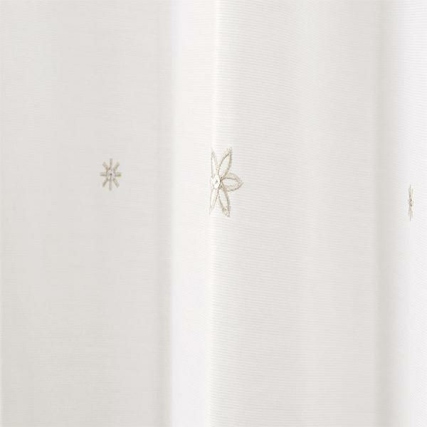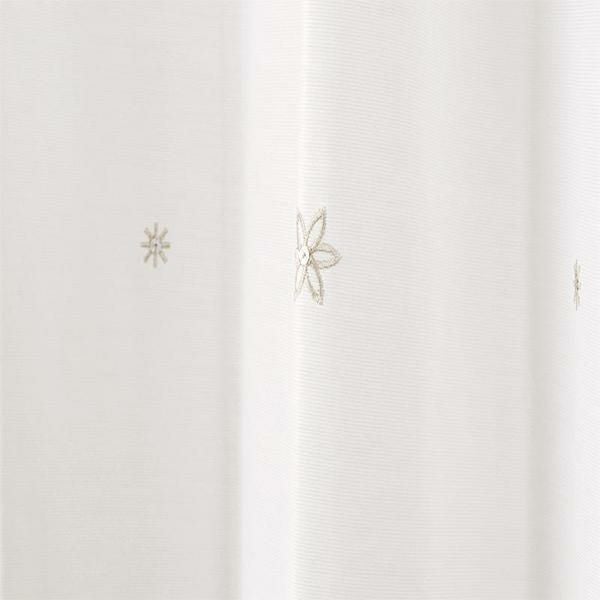レースカーテンは、キラッと光るスパンコールがアクセントの小花柄を刺繍で表現した、柔らかい風合いのボイル生地。UVカット、ミラー、省エネ機能付きのため、安心してお使いいただけます。