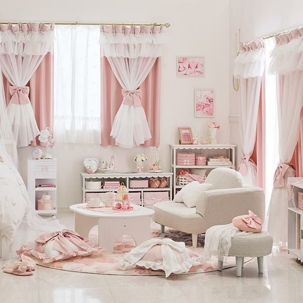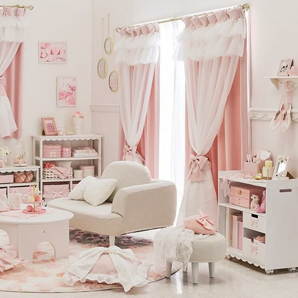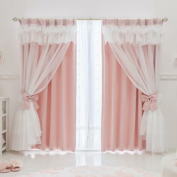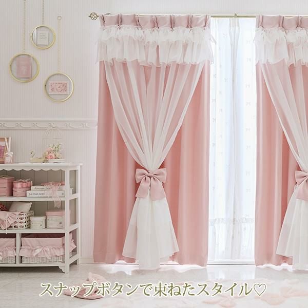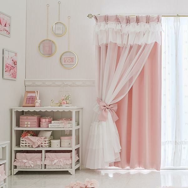 幾重にも重なるフリルとリボンが優雅に視線を集める、憧れのドレスのような遮光カーテン。窓辺に、気品あふれるお城のような彩りを♪