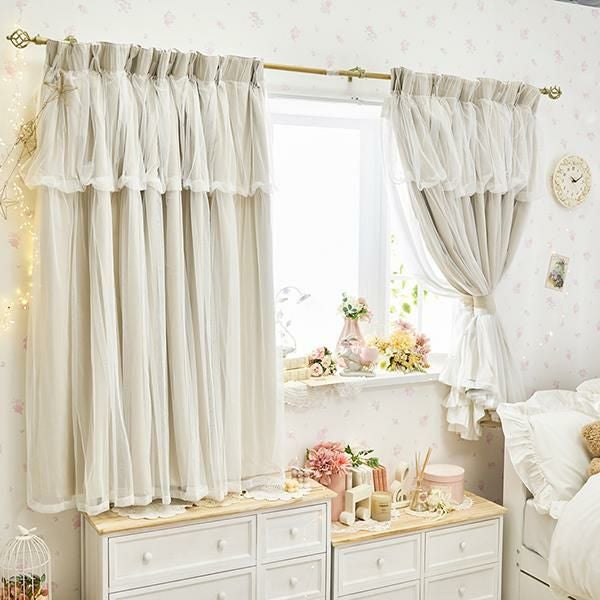 ストンと落ちたドレープカーテンに曲線を描いた上飾りフリルがとっても可愛いです。お部屋の雰囲気が変わりガーリーに。姫感アップでとても可愛くなりました。遮光力もあるので、おすすめのカーテンだと思います。サイズ違いで購入し、お気に入りです。(にゃんさん)