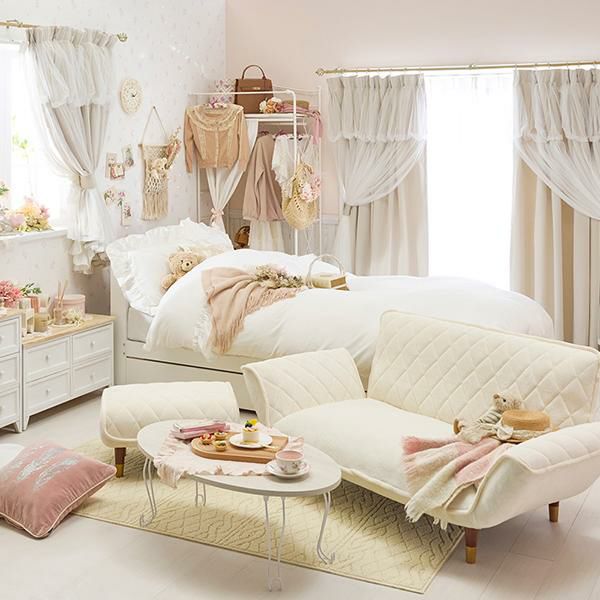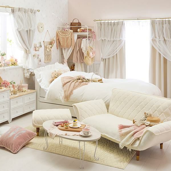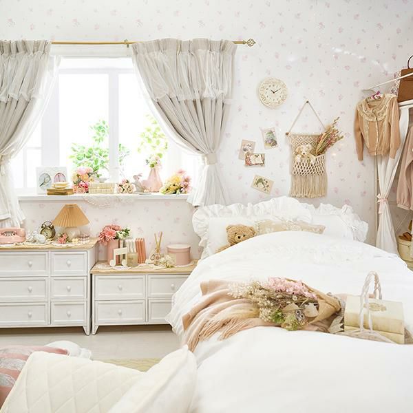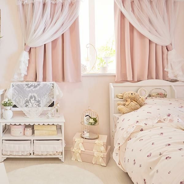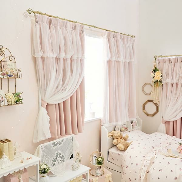 憧れのプリンセスルームにぴったりなフリルのたくさんあしらわれた、かわいいデザインのカーテンで、お部屋をかわいくイメージアップできます。また多くのオーダーカーテンも取り揃えています。