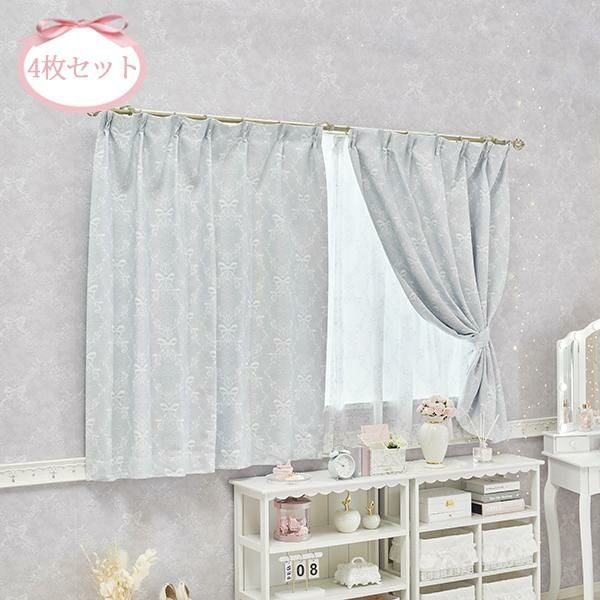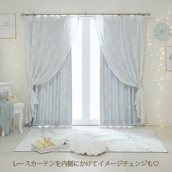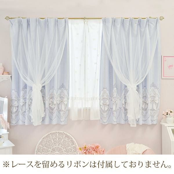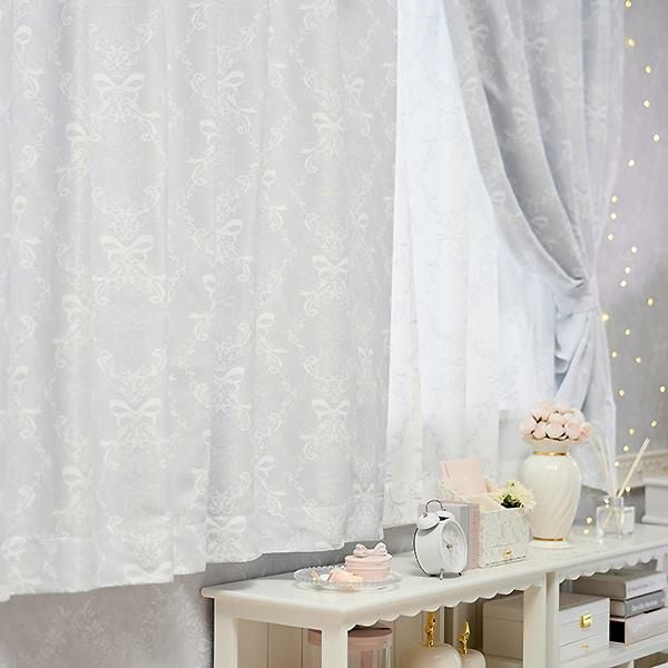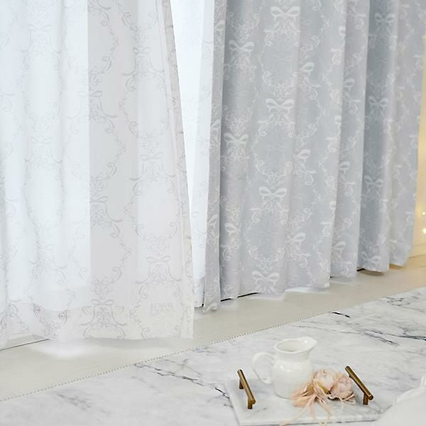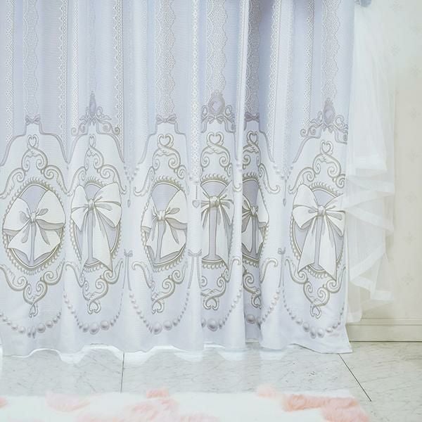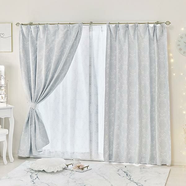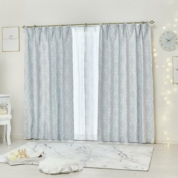 カメオリボン柄遮光カーテン(100×178・185・200)