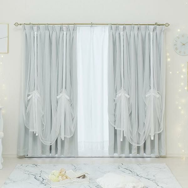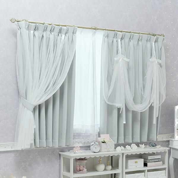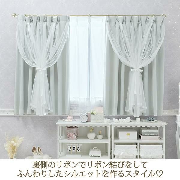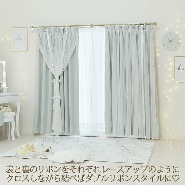 リボンアレンジレイヤード遮光カーテン/グレー(幅100×丈178・190・200・2枚組)