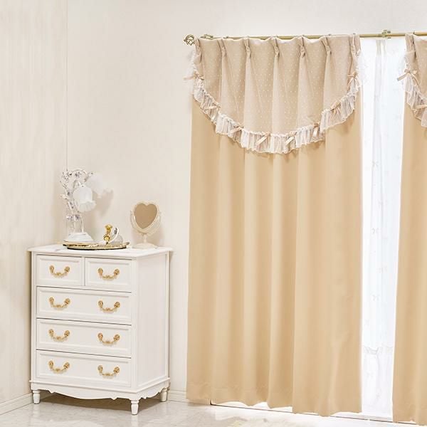 ストンと落ちたドレープカーテンに曲線を描いた上飾りフリルがとっても可愛いです。お部屋の雰囲気が変わりガーリーに。姫感アップでとても可愛くなりました。遮光力もあるので、おすすめのカーテンだと思います。サイズ違いで購入し、お気に入りです。(にゃんさん)