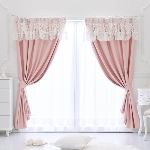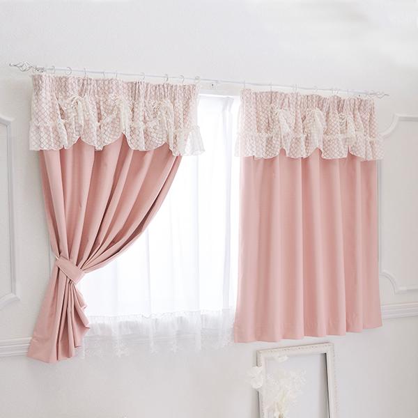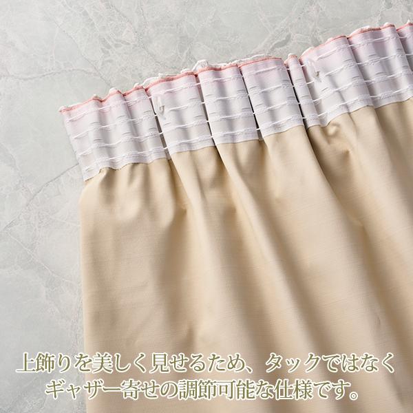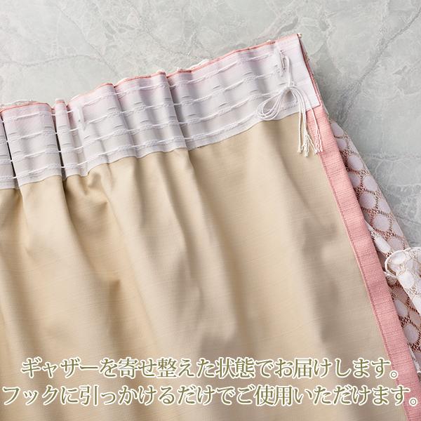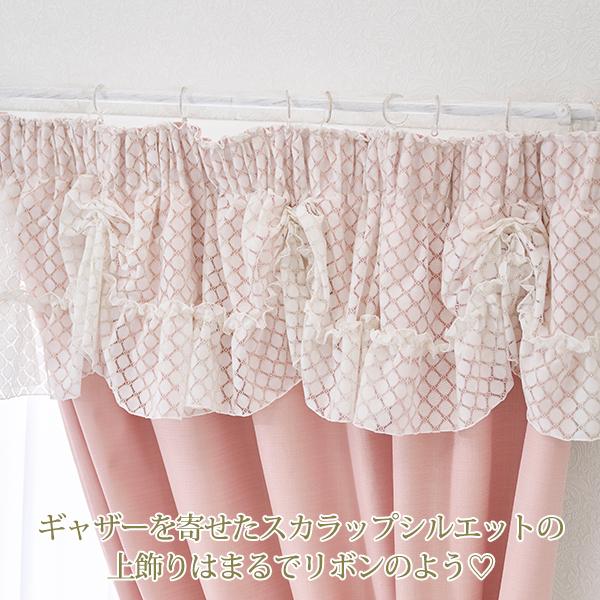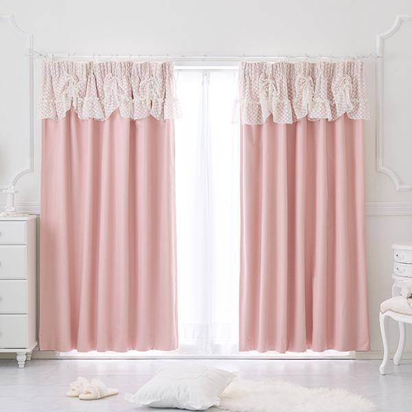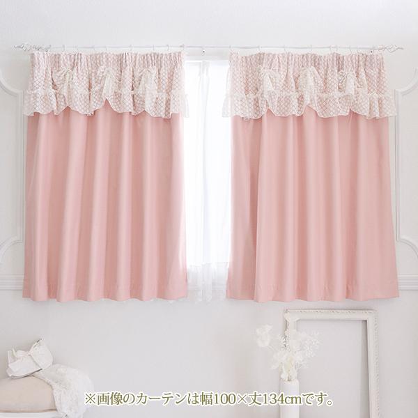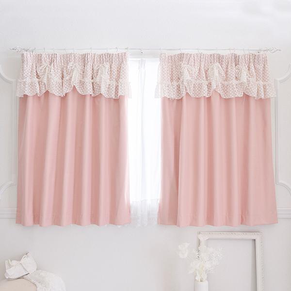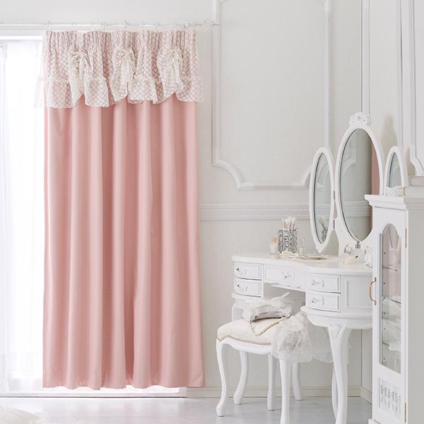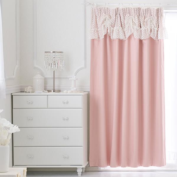 【オーダー・直送】完全遮光のシャノン上飾り付きカーテン(ピンク・幅100cm×丈140~158cm・2枚組)
