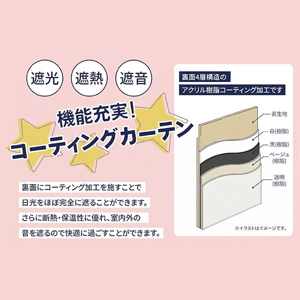 【オーダー・直送】完全遮光のシャノン上飾り付きカーテン(ピンク・幅100cm×丈180~198cm・2枚組)