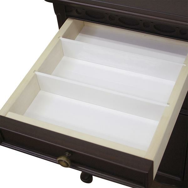 18世紀、ルイ15世時代のフランス宮廷から始まり、貴族の宮殿や上流階級のご婦人を中心に流行した、直線を排した軽快で華麗なフランス・サロン文化を彩る装飾様式だったロココ調家具のエッセンスを残したフレンチカントリースタイルを、よりカジュアルに実用的なアイテムでセレクトしたトータルコーディネートシリーズです。マホガニー材を贅沢に使い、表面は厳選された木目を使った化粧張りを施し、フレンチエレガンスの代名詞といえる「カブリオールレッグ」(猫脚)と、なめらかな女性的な美しいラインとマホガニー無垢材を削り出した彫刻が特徴です。