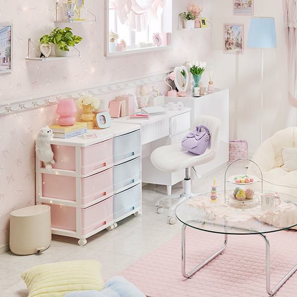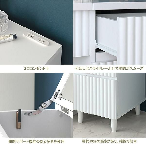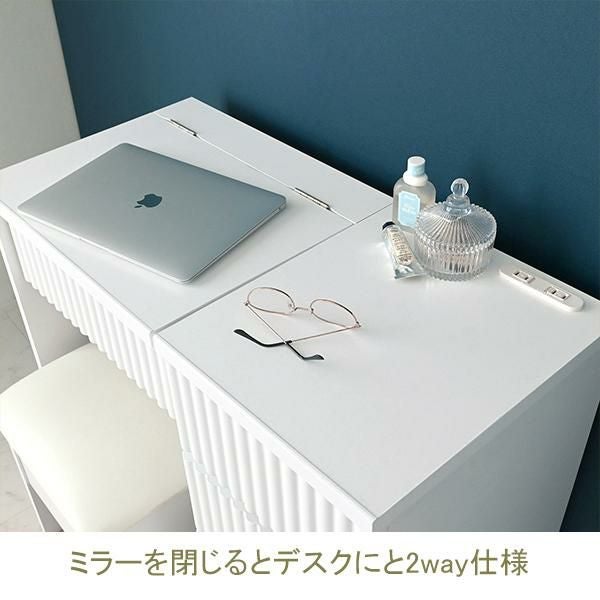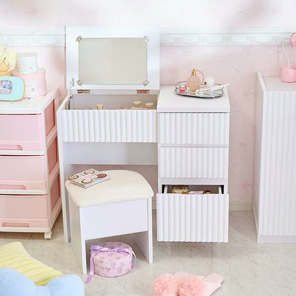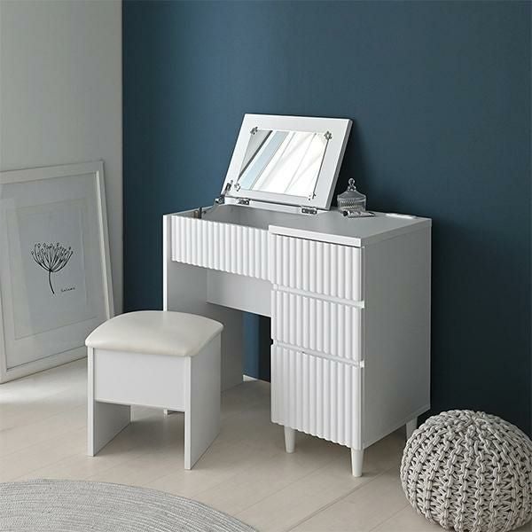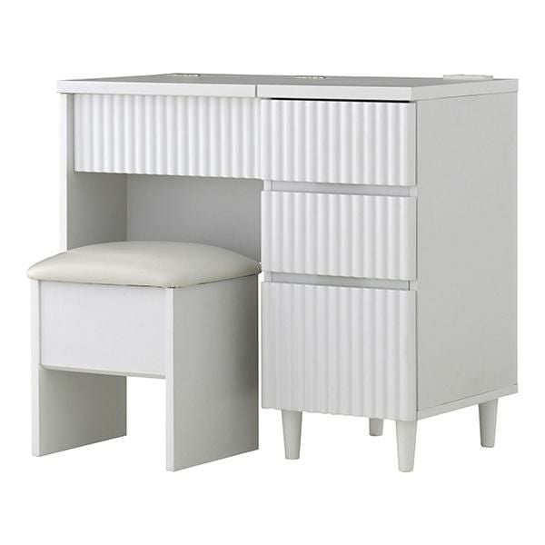 つや消しホワイトの波板が出す立体的な陰影が美しいデザインのドレッサー。