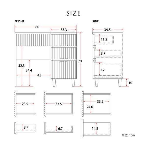〔引き出し内寸(下段)〕約幅24.6・奥行33.5・高さ14.8cm