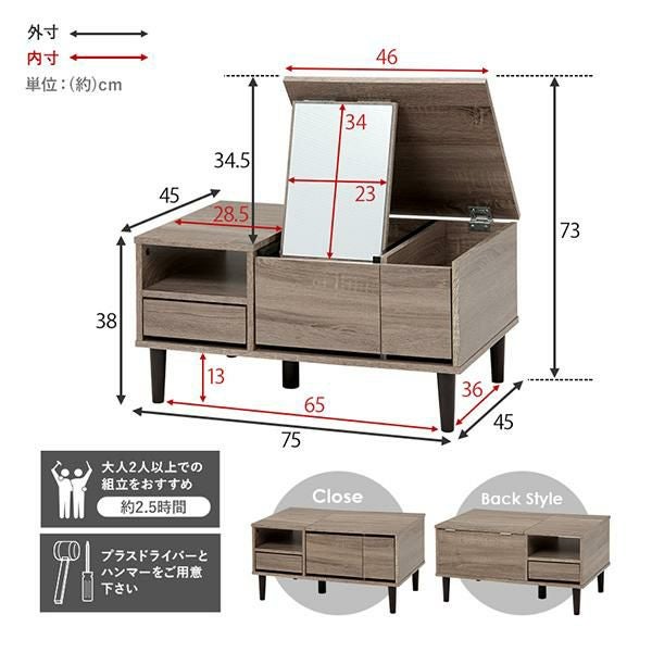 天板を開ければドレッサー♪コンパクトな幅75cmのドレッサーテーブル