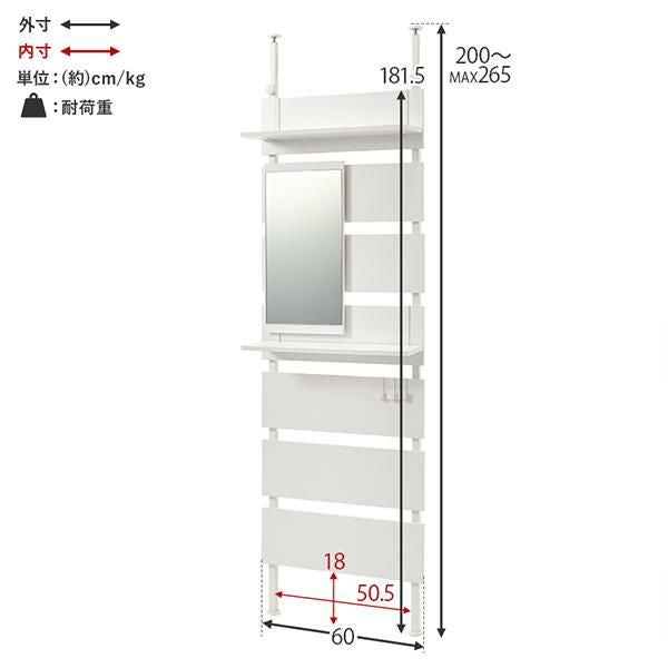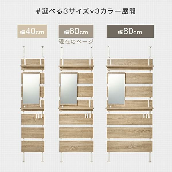 お部屋のいろいろな場所に設置できるミラー付き幅60cmの突っ張り式ラック♪