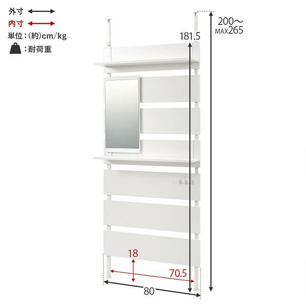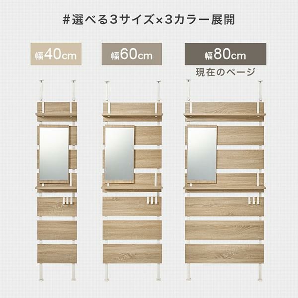 お部屋のいろいろな場所に設置できるミラー付き幅80cmの突っ張り式ラック♪