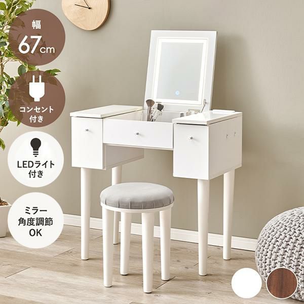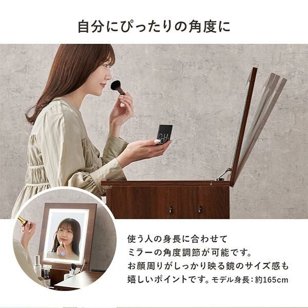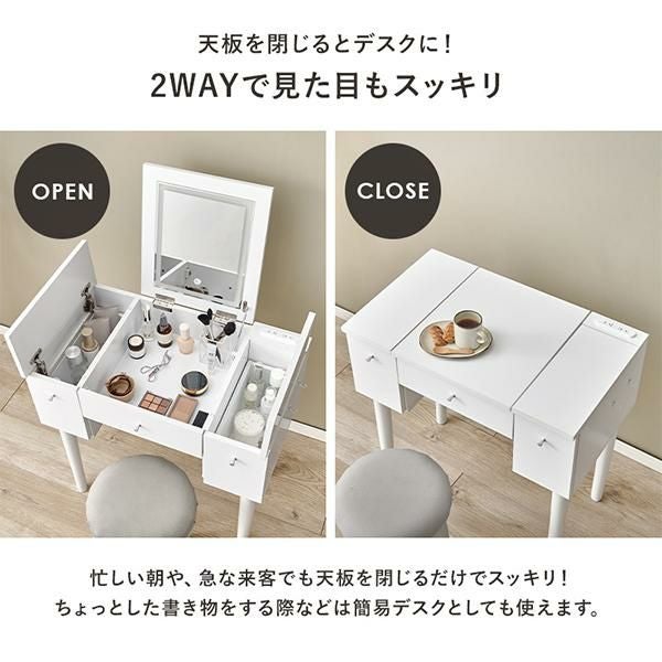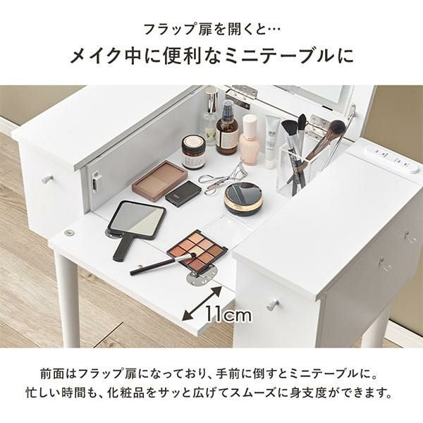 ミラーを閉じるとデスクとして使用可能なライト付き2WAYコンパクトドレッサー♪