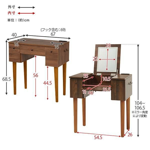 ドレッサー:約 幅69cm・奥行65cm・高さ106.5cm
