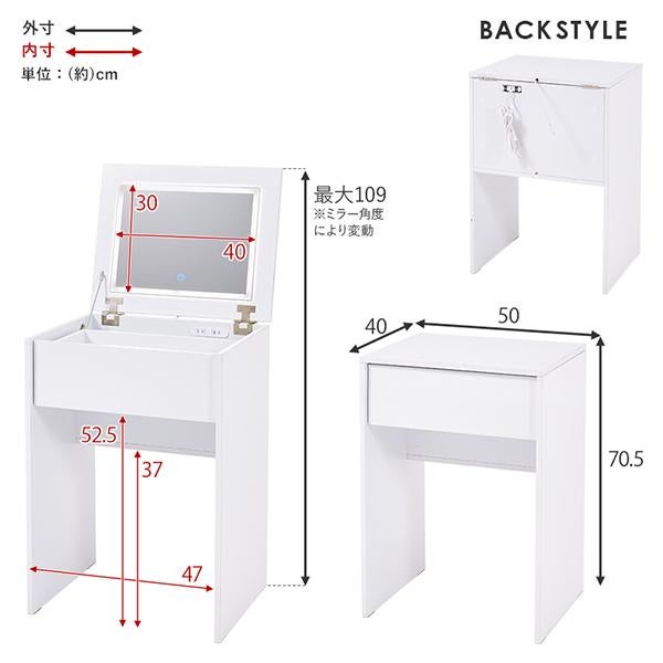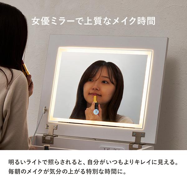 欲しかった機能をすべて詰め込んだ、シンプルデザインのLEDライト付きデスクドレッサー(幅50cm)