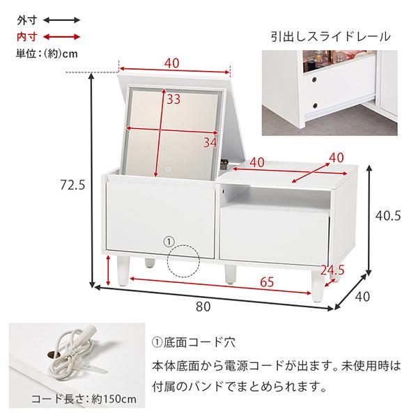 毎日の身支度が楽しくなる、幅80cmのLEDライト付き2WAYドレッサー